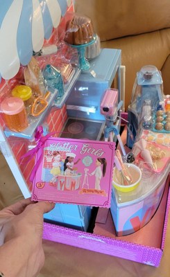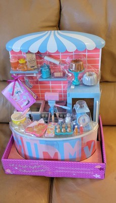 [This review was collected as part of a promotion.] First off, my daughter LOVES the glitter girl dolls, they are a perfect size for her… the attention to detail this company puts in, is amazing. All the little pieces make it so fun. My daughter set it all up and played for hours as if she was recording a baking show… I wish they had this when i was a kid!