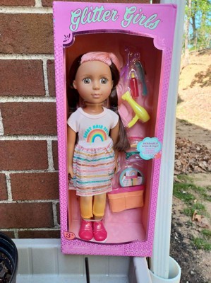 [This review was collected as part of a promotion.] Glitter Girls dolls hair stylers, She's a good size and look so cute. is an adorable 14 inch doll with purple eyes and pink brown hair color. What she doesn't do as well: She doesn't stand very well my 10 year old loves her.