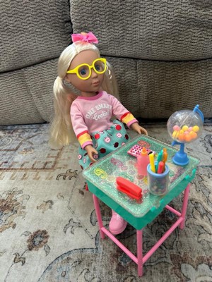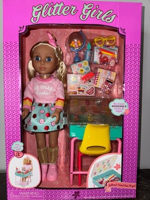 Glitter Girls 14-inch School Doll Mallory and School Desk Playset: 25-Piece Set with Blonde Hair, Plastic & Polyester Materials