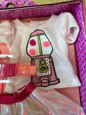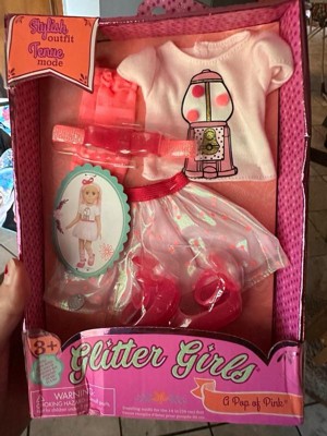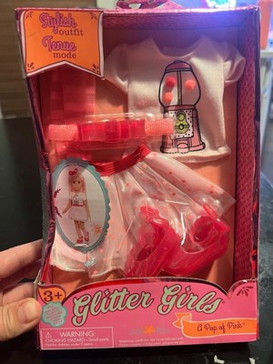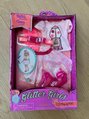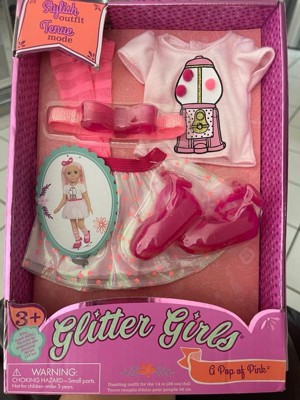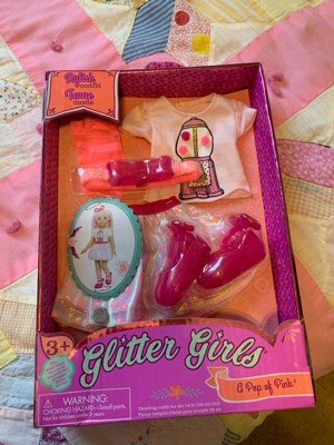 [This review was collected as part of a promotion.] The Glitter Girls "A Pop of Pink" doll clothes set is absolutely adorable and perfect for any little girl's doll collection. The t-shirt featuring a cute gum-ball machine with actual pom poms is so fun. The pink skirt with pink polka dots, matching headband, socks, and shoes create a stylish and cohesive look. My daughter loves dressing her Glitter Girls doll in this set, and it truly brings plenty of giggles and good times. It's wonderfully made and adds a bright, sparkly touch to playtime!