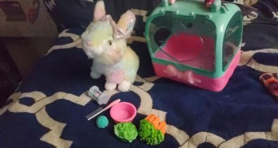 [This review was collected as part of a promotion.] This stuffed pet bunny is so cute. My three year old and 19 month old both loved to feed it it’s carrots. The toy comes with the bunny, the carry case, carrots, lettuce, feed bowl, a brush and 2 toys. My 3 year old immediately started brushing and feeding it and looking at it affectionately. I love that the bunny is a tie dye pastel color! The size is perfect for a child to carry around.