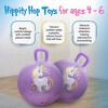 The use of a hippity hops encourages developmental skills. Research has shown that physical play can promote language development, coordination, and cognitive skills. These activities can have long-lasting, positive benefits for your child. The hippity hop was developed with childhood development in mind. The handle is textured and easy to grip to improve stability. It works on balance, strenthening, and social emotional development. There are many sensory benefits as well.