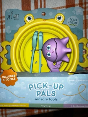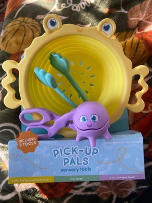 Included are 3 sensory tools: Puffer Pal Expandable Strainer, "Clamp" Shell Tiny Tongs, and a 3-in-1 Scooper Squid!