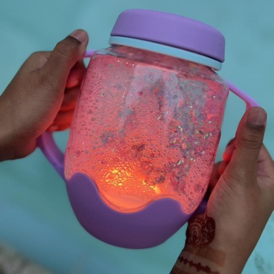 Remove all contents and liquid after play time. Hand wash ONLY with soap and water. Please keep the battery compartment dry and do not submerge your Jar in water.