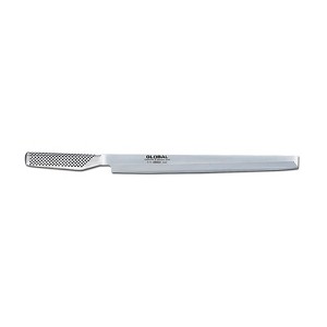 The Global 12-Inch Tako Sashimi Knife is designed for precise, ultra-thin slicing of sashimi, octopus, and other delicate seafood. Made in Japan from Cromova 18 stainless steel, the long, narrow blade is ice-tempered for exceptional sharpness and edge retention. The dimpled Global handle provides a secure, balanced grip, making this knife ideal for sushi chefs and enthusiasts.