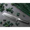 Experience effortless vegetable prep with the Global 7-inch Hollow Ground Vegetable Knife, designed for seamless chopping and minimal food stickiness. Its broad, sturdy blade is perfect for handling vast quantities of vegetables, while the hollow ground edge ensures slices glide off without clinging. Crafted from the finest CROMOVA 18 stainless steel, this knife promises enduring sharpness, superior balance, and resistance to rust and corrosion, making it an indispensable tool in any kitchen.