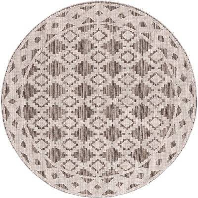 Global GLB208 Power Loomed Indoor/Outdoor Area Rug - Beige/Dark Beig - 6'7" Round - Safavieh