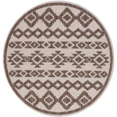 Global GLB210 Power Loomed Indoor/Outdoor Area Rug - Gray/Beige - 6'7" round - Safavieh.