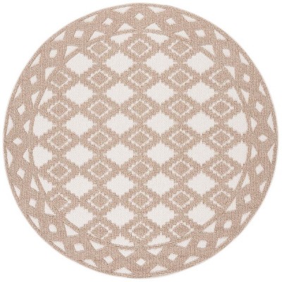 Global GLB226 UV & Stain Resistant Non-Shedding Power Loomed Indoor/Outdoor Area Rug - Beige/Brown - 6'7" Round - Safavieh