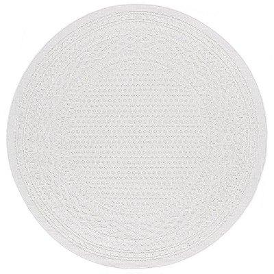 Global GLB234 Power Loomed UV Resistant Stain Resistant Non-Shedding Indoor/Outdoor Area Rug - Light Beige/Ivory - 6'7" Round - Safavieh
