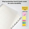 - Planner with PLENTY of writing space. Printed on cream (off-white) paper. Thick paper will prevent bleed through. Clear FROSTED VINYL Protective front & back cover for extra durability. Strong Wire-O Binding for a professional look.