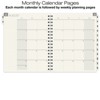 - 2 Page MONTH AT A GLANCE Spreads followed by 2 Page WEEK AT A GLANCE Spreads.