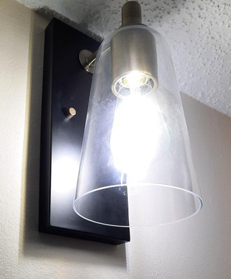 Introducing the Globe Electric Modern Farmhouse 1-Light Wall Sconce, a perfect blend of old and new design elements that beautifully captures the essence of modern farmhouse style. The rustic matte black backplate and clear glass shade harmoniously combine to create a stunning fixture that adds character and charm to any space. The clear glass shade of this wall light is designed to showcase the bulb of your choice, allowing you to personalize your lighting and create a unique ambiance. Experience the convenience of dimmable lighting. Pair your fixture with a compatible dimmer switch (sold separately) and effortlessly adjust the brightness to create the ideal ambiance for any occasion. From cozy and intimate settings to well-lit gatherings, customize the lighting to suit your needs and preferences. Upgrade your space and bring the perfect blend of old-world charm and contemporary design.