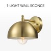 - CURATED RETRO: the nostalgic design of the 1-light wall sconce light fixture offers the perfect vintage aesthetic with a brushed brass finish and dome shade to bring curated retro style into your home