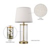 - VERSATILE GLAM DESIGN: with an open clear glass base, matte brass accents, and beige linen shade, this lamp embodies glamorous transitional design and is versatile enough to place in any room