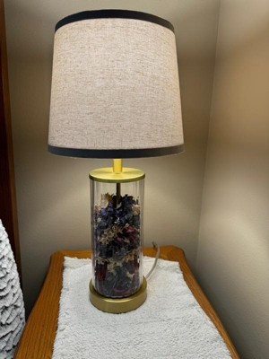 Add a blast of designer style with the Globe Electric 20-inch Clear Glass Fillable Table Lamp. The large clear glass base can be used as a stylish room accent or customize the look by filling it with your favorite decorative objects. The lamp base opens, allowing you to use any decorative object of your choosing, such as flower petals, shells, seasonal decorations, corks, or even colored sand - the possibilities are endless! Assemble the durable beige linen shade with ease; simply unroll the fabric and clip it in. This innovative design not only adds to its appeal but also contributes to eco-friendly packaging, reducing environmental impact in style. Designed to enhance the ambiance and aesthetics of any room, its captivating presence promises to bring a touch of warmth and sophistication to your surroundings!