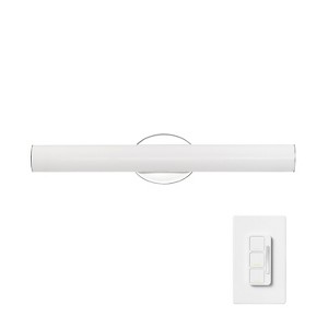 Introducing the AmbianceSelect™ 24" Dimmable Color Adjustable LED Integrated Vanity Light by Globe Electric, the perfect blend of style meets functionality. AmbianceSelect™ technology allows you to have full control of color and brightness levels with a hassle-free installation (no wiring) remote control that can live seamlessly on your wall. This bathroom vanity light offers a dimming range of 100% to 5% and includes three color adjustable color temperature options (2000K, 3500K, or 5000K). To enhance your bathroom lighting, the frosted acrylic diffuser provides a soft, warm white glow that's easy on the eyes, while the magnetic, wall-mounted remote dimmer lets you customize the color temperature to best suit your needs. Thanks to the lack of replacement bulbs needed, this LED Integrated vanity light fixture is virtually maintenance-free and super cost-efficient. Plus, its bold, chrome finish complements minimalist design, making it ideal for any room in your home.