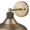 The Sutton Collection is a stunning blend of stylish elements for a modern, traditional or farmhouse feel. Connected to a round backplate by a stylishly simple connecting bar, the trendy textured socket and farmhouse shade incorporates a modern feel to emphasize a perfect balance of cozy, functional and casual living. This gorgeous wall sconce would add an exciting element to a veranda or a large, beautiful entryway just as easily as it would look amazing in a bathroom flanking the mirror. The matte brass finish adds warmth and dimension to your existing decor while balancing a dark-colored room or accenting a more rustic space. Plus, you can truly customize the Sutton Wall Sconce by changing the bulb. A vintage Edison bulb helps complete the modern farmhouse feel while a designer bulb can help showcase your unique style. The choice is yours.
