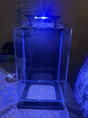 [This review was collected as part of a promotion.] omg very perfect! The perfect size for a beginner tank. It was easy to set up and thus far my two Bettas and two bottom feeders are swimming around nicely. The option of blue or blue/white light is nice. I prefer the blue light for a calming visual affect.