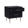 Elevate your space with the Gloria Modern Mixed Material 2-Drawer Nightstand, a statement piece that blends contemporary elegance with everyday functionality. Designed with a sleek gloss black finish, this nightstand radiates sophistication, while slender gold accents on the sculpted drawer pulls and sturdy metal legs add a touch of glamour. Its clean lines and compact silhouette make it a versatile addition to any bedroom or living space, whether as a chic bedside companion or a stylish side table.