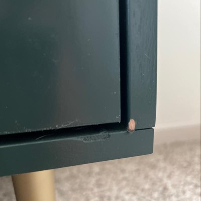 The color is beautiful but it came damaged. There were scratches and scrapes. Where they had put the screws to secure the handle from the outside had chipped the paint on the front of the drawer. I would have returned but I live in a second story unit and it is heavy. I couldn’t have taken it down to return it on my own. Not worth the price point.