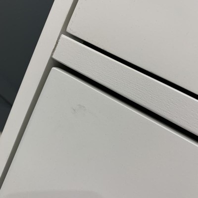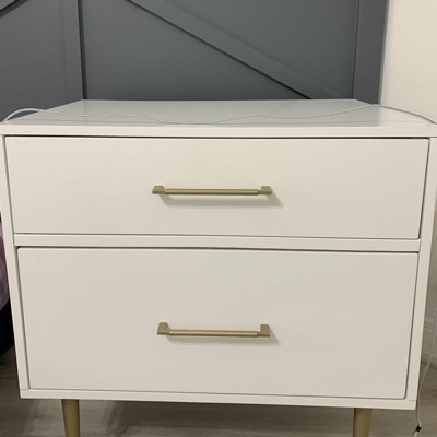 Tina, Your feedback on the Gloria 2 Drawer Nightstand White is appreciated. We are sorry the piece arrived in less than perfect condition. This information has been passed along to our QC department for investigation to keep this from happening again. If you choose, you can reach us at 800-262-1852Monday - Friday 9am - 5pm EST or consumersupport@linon.com for assistance.