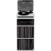The Glorious Modular Mix Rack is ideally suited for use as turntable monitoring station, while also providing an option for storing vinyl. The 3-part construction consists of two large compartments for 12''-records, one compartment for 7''-records and a storage area for a turntable or mixer. In total, the Modular Mix Rack offers enough capacity for up to 280 12''-records and 300 7''-records. The surface can accommodate a turntable, CD player or mixer and unsightly cables can be easily hidden via various ducts on the upper surface, interior space and at the bottom. The 7'' compartment is also suitable for storing an amplifier and offers cable routing options. The Modular Mix Rack is characterized by an especially sturdy and robust construction and is therefore perfectly suited for use as monitoring station or DJ table (when three modules are combined). Moreover, the Modular Mix Rack can be used as extension for the Modular Mix Station. Easily assembled in just a few steps, the turntable monitoring station is ready for use in no time.