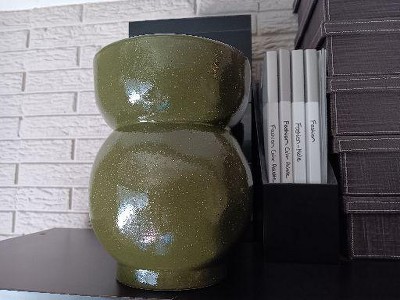 This Glossy Textured Vase from Threshold™ designed with Studio McGee combines modern design with artistic flair. It's made of watertight ceramic and designed in a green hue with a glossy finish for a touch of bling. Style this gourd-shaped vase with fresh or faux flowers to create a centerpiece for a cozy nook in your home.