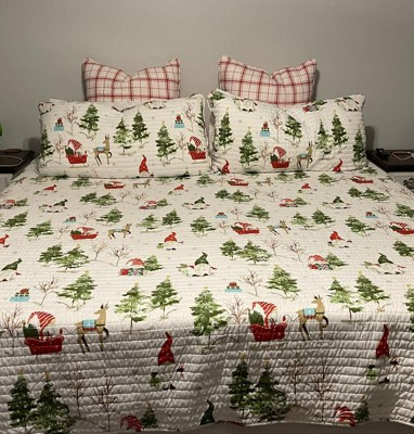 - GNOME FOREST QUILT SET: A fun, whimsical holiday and sham, this quilt set is part of the Merry & Bright Gnome Forest collection. Used by itself, as a layering piece or as a bedspread, this quilt is extremely versatile.