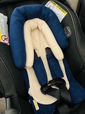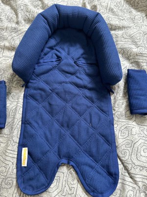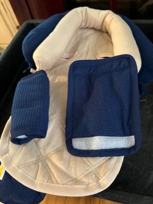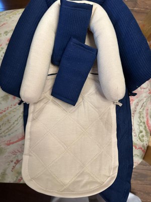The Navy/Cream Waffle Duo Head Support & Strap Cover Set from Target is fantastic! We really like how soft it is and how comfortable the baby seems to be when using it. The design is really great and the materials are super soft!
