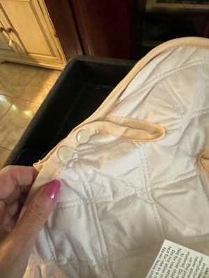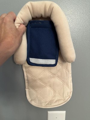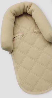 This double head support is very charming with its quilted look, classy with the navy and cream colors, and super supportive. The cream colored support is perfect for newborns who need the extra support. I love the matching seat belt covers as well!