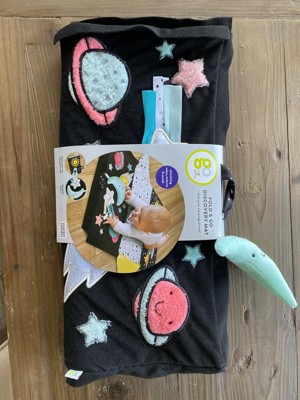 Go Fold & Go Discovery mat is well made and easy to clean. It's the perfect size for babies and great because it folds and you can take it anywhere. There is actually a lot on this little mat to stimulate the senses. There's a little moon that makes a chime sound, there are squeaker sounds, there's crinkly fabric and soft fabric. This is the perfect mat for tummy time. I highly recommend this product!