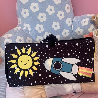 To outerspace and beyond! Turn any space into a play space with our sensory -stimulating activity mat! It features soft, engaging textures, high-contrast colors and fun rattle sounds to encourage discovery and exploration through our fun space theme and adventure. And, the unique foldable design is perfect for travel and toy storage.
