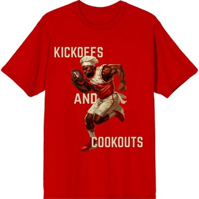• CUSTOM DESIGNED: This football apparel features a big, colorful graphic of a running football player and the words, "Kickoffs and Cookouts" - an eye-catching image that has been professionally printed for long-lasting print quality.
