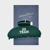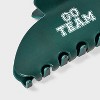 Cheer your favorite team on in cool style by accessorizing with the Go Team Half-Moon Claw Hair Clip from Universal Thread™. Designed in a half-moon shape, this green claw hair clip features the white text "Go Team" for appealing contrast and fun, sporty vibes. This claw hair clip is great for securing and styling hair and suits all hair types.