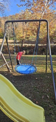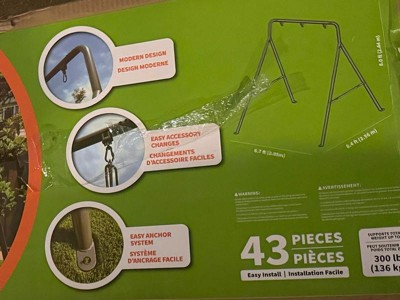 [This review was collected as part of a promotion.] My kids are absolutely obsessed with this new swing! Assembly is definitely a two-person job, but overall it was fairly easy to put together. One feature we really love is the extra-large stakes that screw into the ground—this makes the entire setup incredibly stable and secure. Just a heads-up: the swing frame doesn’t come with the actual swing attachment, so that part needs to be ordered separately. Fortunately, it was easy to find and install. Overall, we’re very happy with it and the kids are having a blast!