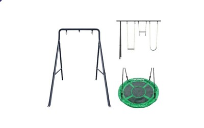[This review was collected as part of a promotion.] This is the swing set extension frame only. It’s the piece you use to make your existing swing set larger. At first, I thought it was the complete frame, but it’s actually just the middle section that connects to the main frame. It’s very heavy and sturdy, made of strong metal, and comes in one box. It’s easy to set up, but you do need to have the main swing set frame for it to work. This extension is perfect if you want to expand your swing set and add more accessories or play features. Overall, it’s a great addition durable, solid, and well made.
