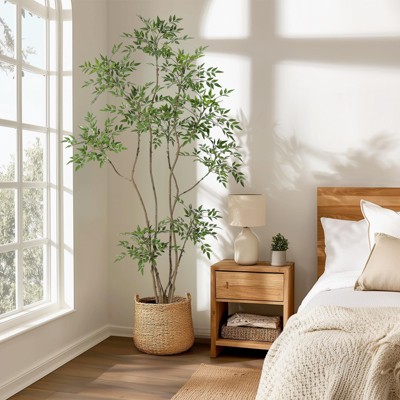 GOCAPTAIN 180cm Artificial Ficus Tree Indoor with Planter, Realistic Faux Ficus with White Pot, Fake Plant with Moss & Pebbles for Home, Office