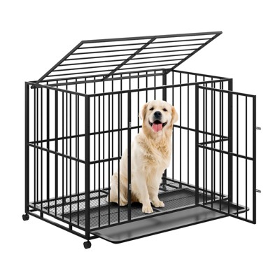 GOCAPTAIN 36 Inch Dog Crate for Small Sized Dogs, Heavy Duty Stainless Steel Dog Kennel Indoor Escape Proof with Wheels and Removable Tray