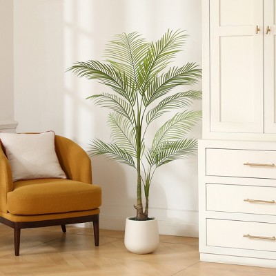 DR.Planzen Faux Palm Trees with Oval White Planter, Pre Potted Fake Greenry Palm Tree for Home Decor