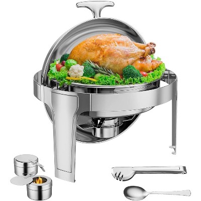 GOCAPTAIN 5QT Round Stainless Steel Chafing Dishes Set with Lid Holder & Cover - Gold Buffet Warmers for Parties/Festivals/Weddings