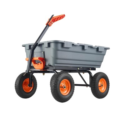 Reinforced Steel Frame with 600 lb Load Capacity: Constructed with a reinforced steel frame and durable polypropylene tub, this garden dump cart is designed to handle up to 600 lbs of materials such as soil or yard debris. The stable structure supports consistent use during routine outdoor tasks.