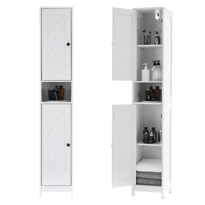 Standing 66 inches high with a narrow footprint, this cabinet makes efficient use of vertical space, fitting perfectly in tight corners, beside toilets, or in narrow hallways without occupying valuable floor area