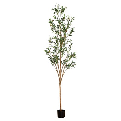 GOCAPTAIN 6FT Artificial Olive Tree, Faux Silk Plant with Natural Wood Trunk, Lifelike Fruits, Black Planter & Green Moss for Home Office Decor