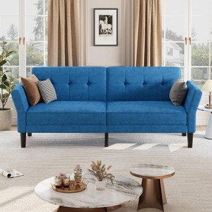 GOCAPTAIN 89" Futon Sofa Bed - Convertible Sleeper with Adjustable Backrest & Armrest, Modern Blue Couch
