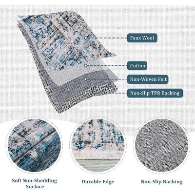 GOCAPTAIN Boho Distressed Floral Area Rug, Non-Slip Indoor Washable Rug, Stain Resistant Print Low Pile Carpet for Bedroom/Kitchen/Dining Room