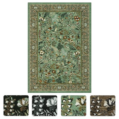 GOCAPTAIN Vintage Washable Area Rug, Foldable Thin Accent Rug, Stain-Resistant Distressed Carpet, Floral Print Soft Mat for Bedroom Living Room