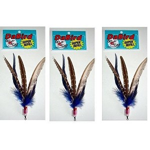 Da Bird is so popular with cats that sooner or later you're going to need Da Replacement feathers! This value pack of three Da Bird SUPER Replacement Feathers are easy to connect to the existing string; as easy as opening and closing a safety pin. MADE IN THE USA- THIS PRODUCT KEEPS AMERICANS WORKING.