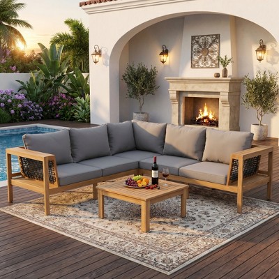 GODEER 5pc Wicker Outdoor Conversation Set: Polyester Cushions, Steel Frame, Includes Coffee Table