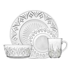 Godinger Silver 16pc Dublin Crystal Dinnerware Set: Hand Wash, Microwave-Safe, Service for 4, Includes Plates, Bowls, Mugs